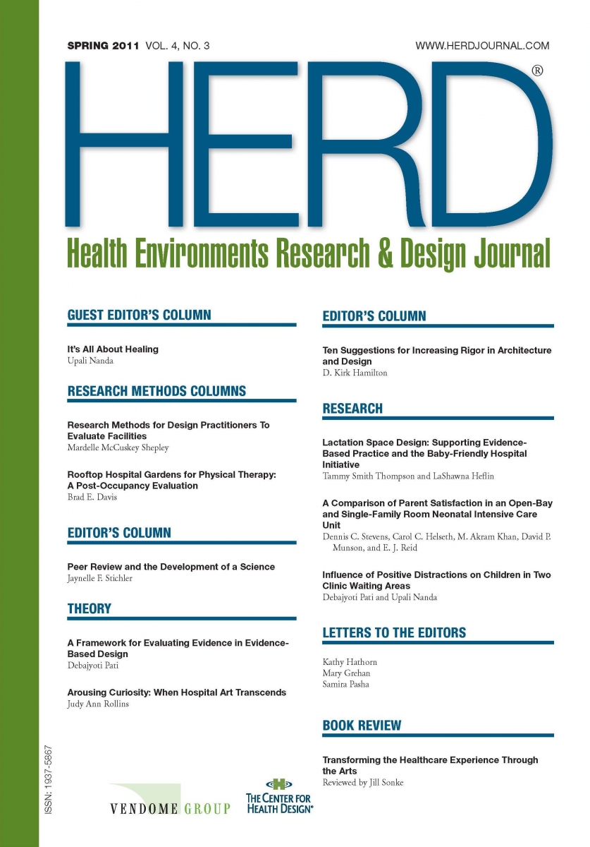 The HERD Journal Spring 2011 issue (Vol. 4, No. 3) is available and contains the following research articles: